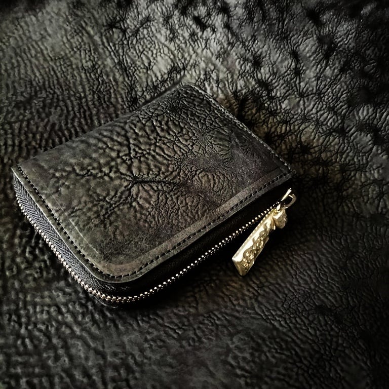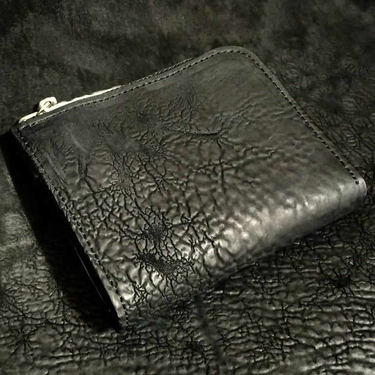 〇〇〇〇〇〇〇『 FREAK LEATHER ARTISAN - Yokohama ☆ Motomachi -』〇〇【至高のNERO】Black Crest L字ファスナーウォレット +Crush Hammer Silver925 Puller〇〇変態的に革もファスナーの引手も拘ってみた〇革はコードバン層が隆起したホースクラッタ〇引手はキャスト(鋳造)以外は革職人自ら削り出し仕上げた1点物のシルバー925〇〇〇