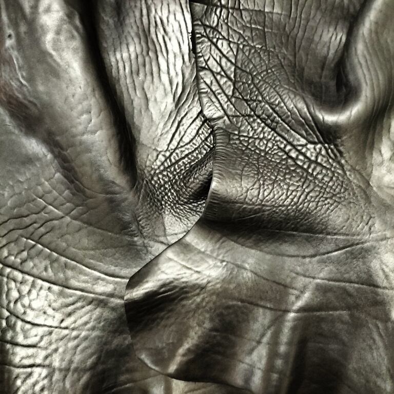 表面はコードバン層とバケッタ層が織りなすスケール、裏面の吟面層はシボやトラの深いシワが刻まれてます。