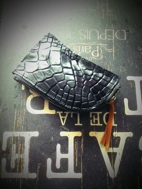 革はブラックマッドクロコダイルの脚の付け根を使用。