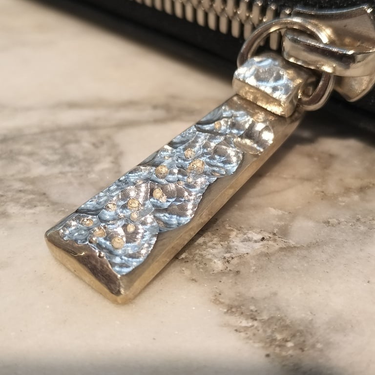 こちらはファスナーの引手『Crush Hammer Silver925 Puller C』を装着した商品となります。