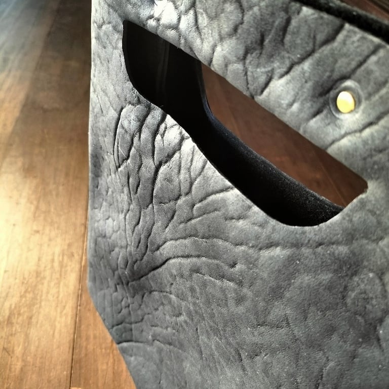 画像ではギラッとしてますが、黒のスエードに血筋模様が入ってる感じで落ち着いてます。