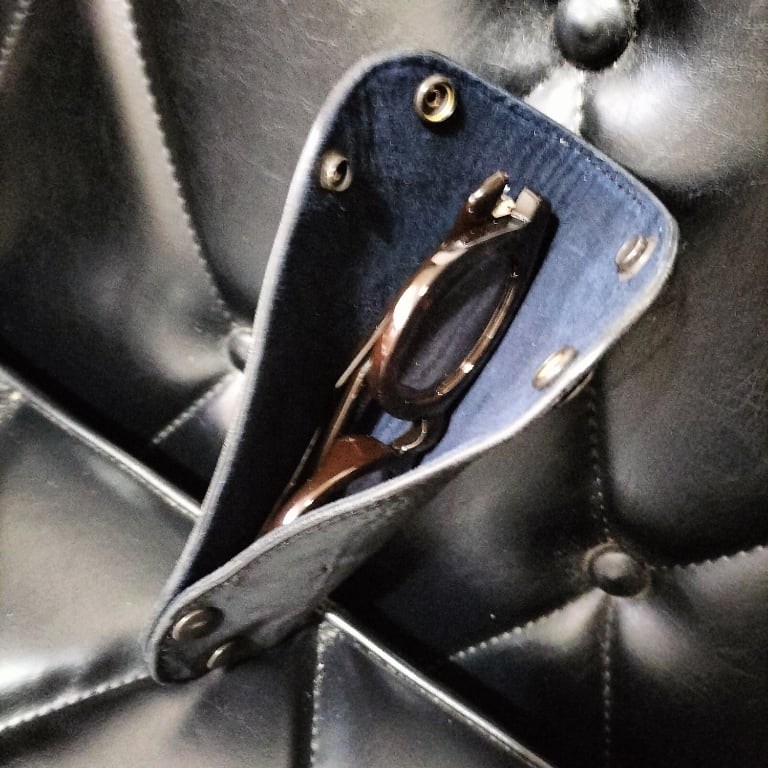 自宅や宿泊先ではレザートレーとして、お出かけの時はメガネケースとして携帯できます。