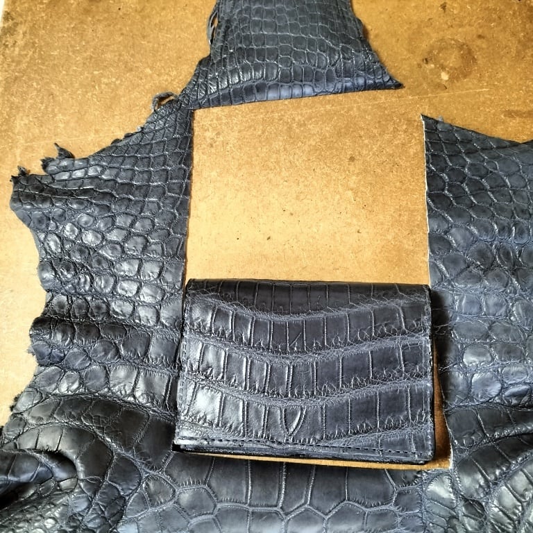 クロコダイルの下顎を使用しているので斑模様がとても細かく上品な仕上がり。