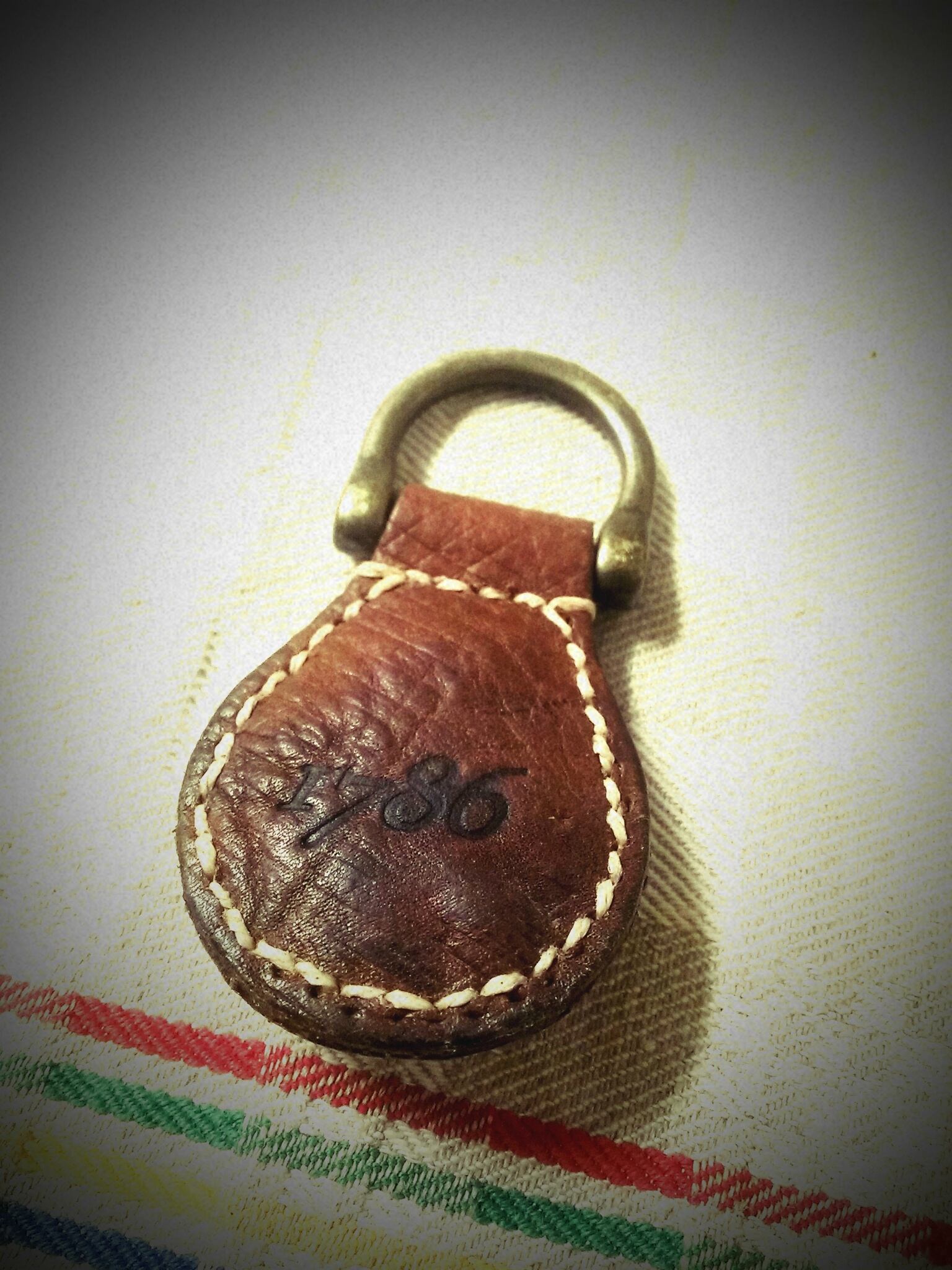 靴作りの過程で出るswatch (ハギレ)を使いキーリングを作りました。