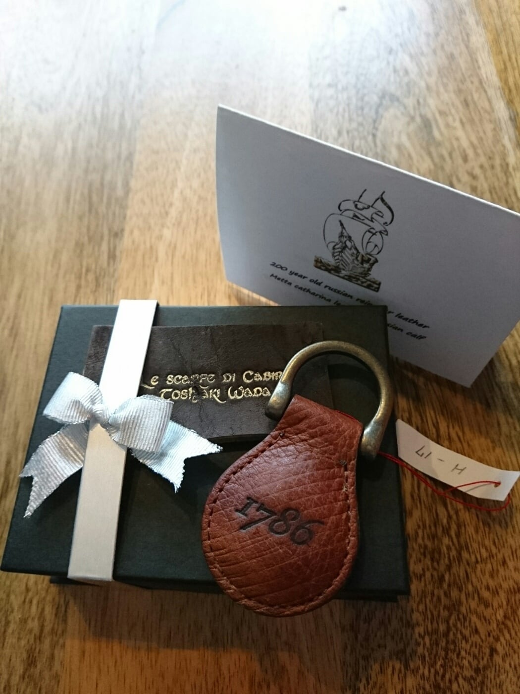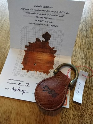 予約が必要ですが二子玉川のアトリエにてキーリングと証明書に記載のロシアンカーフのまる革をご確認してからの ご購入をおすすめします。