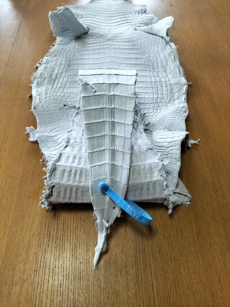 今回クラストのクロコで①下顎から喉②ベリー上部③ベリー下部の計3点製作しましたが、こちらの商品は③ベリー下部の作品となります。
