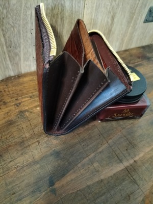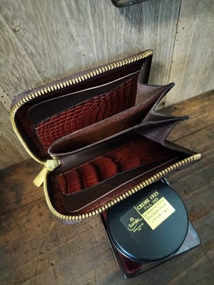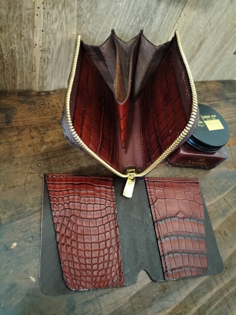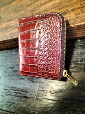 アリゲーターL字ファスナーウオレット・赤茶