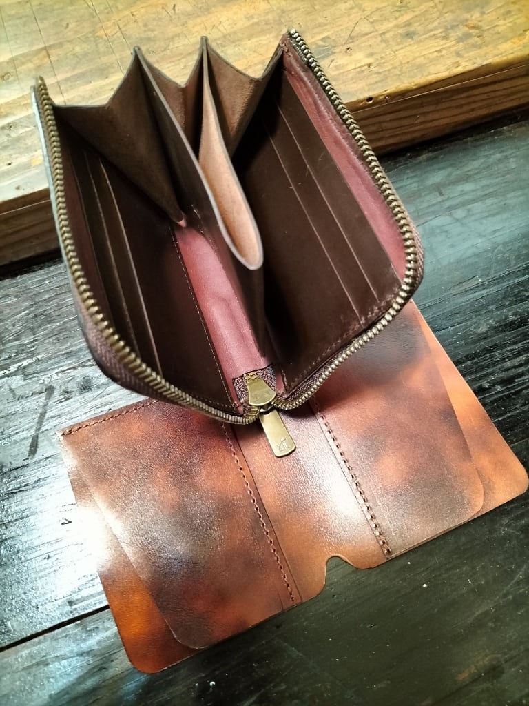 お札がコインポケットの下に滑り込み易いようにスペースと角にアールをもたせております。