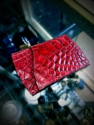 本物のクロコダイルですがハギレを使用してますので、キズやスレ、ミシンのローラーの跡などもありますので、美品をお求めの方はご遠慮下さい。